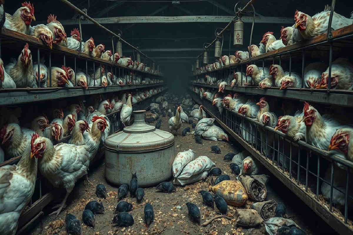 Le gabbie sono anguste, l’igiene è precaria, e le condizioni spingono le galline a un comportamento estremo: il cannibalismo tra gli animali, una realtà che fa rabbrividire. Ma non è solo questo. I ratti, numerosi e impuniti, si aggirano tra mangimi e carcasse in decomposizione, mentre le pratiche di gestione degli animali morti sollevano interrogativi pesanti: carcasse sospette, materiali riciclati per produrre alimenti come i würstel. Un allarme che scuote l’intero settore, con consumatori, produttori e autorità divisi tra paura, incredulità e la ricerca disperata di risposte.